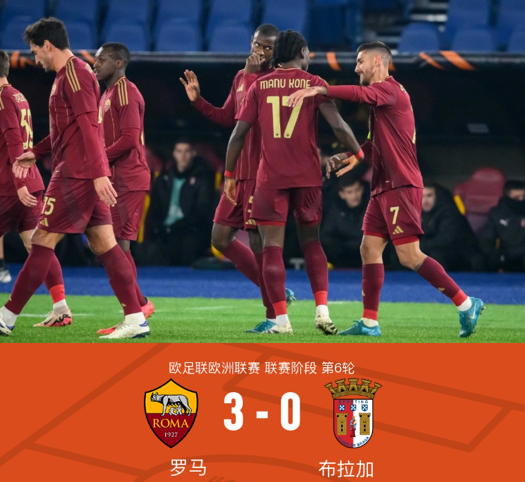 第47分钟,科内送助攻,阿卜杜勒哈米德斩获罗马生涯首球,罗马2-0布拉加