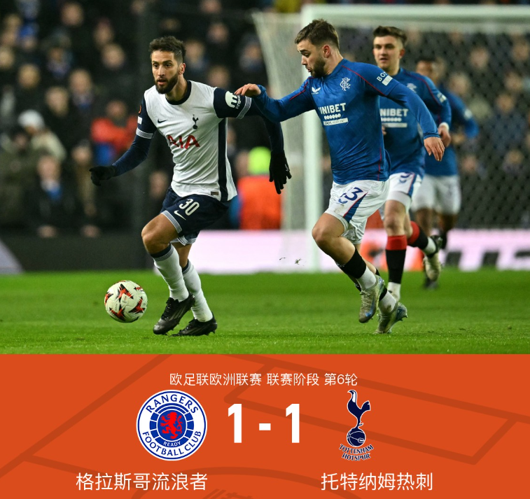 库卢替补建功扳平,流浪者1-1热刺。积分榜方面,热刺11分暂第九,流浪者同分第八。