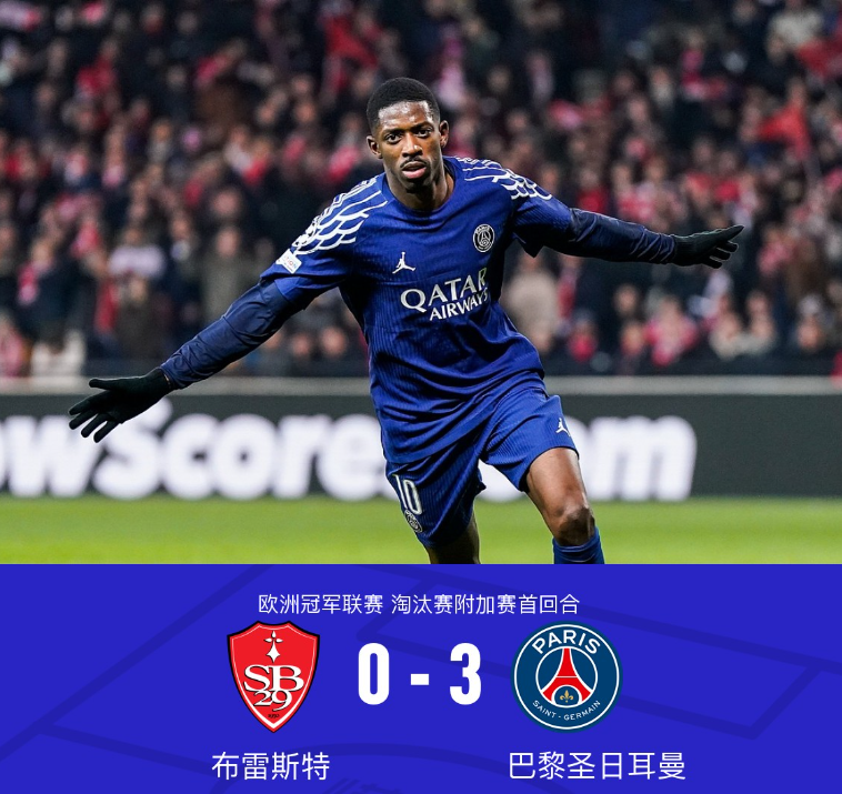 第 45+1 分钟:登贝莱状态火热,他内切后打近角得手,帮助巴黎圣日耳曼 2-0 领先结束上半场。