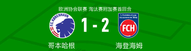 在欧洲协会联赛淘汰赛附加赛的首回合对决中,丹麦的哥本哈根主场迎来了德国的海登海姆。这场比赛充满了戏剧性,海登海姆在落后的情况下实现逆转,最终以 2-1 的比分战胜哥本哈根,在两回合的较量中占据了有利位置。