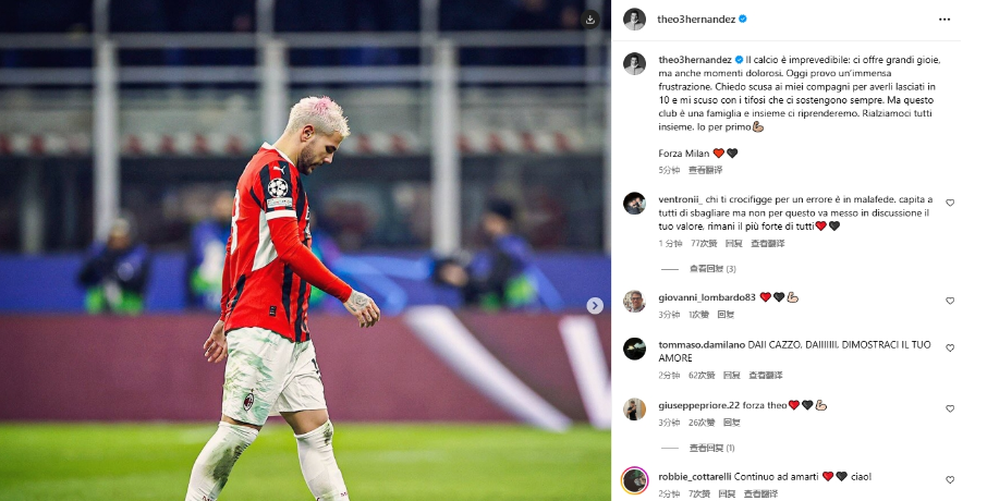 特奥的这番诚恳的道歉和积极的表态,展现了他对自己失误的深刻认识,也让球迷们看到了他想要重新证明自己的决心。希望在未来的比赛中,特奥和 AC 米兰队能够汲取教训,重新崛起。