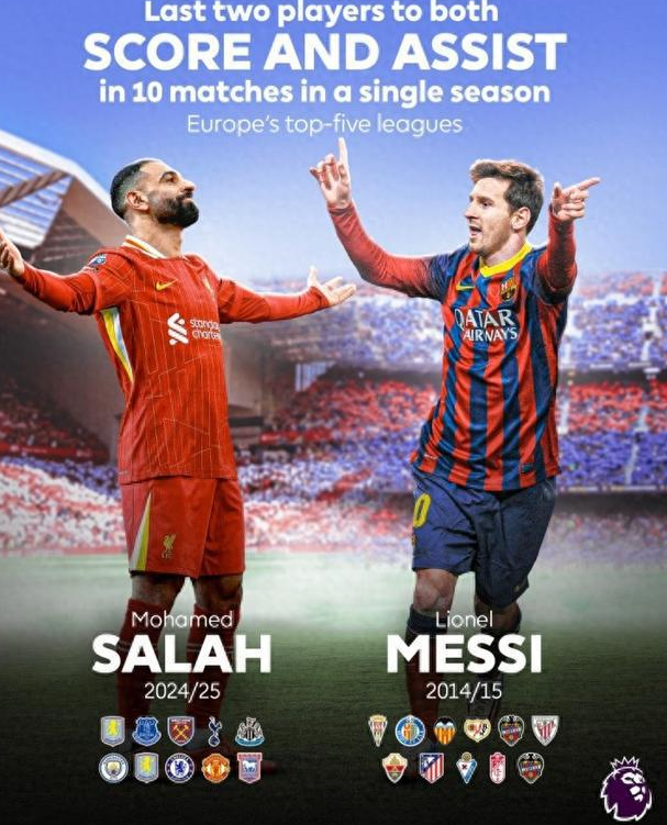 据权威数据统计,本赛季截至目前,萨拉赫在英超赛场状态神勇,已在10场比赛中达成单场传射建功的壮举。这一卓越成就,追平了自2014-15赛季以来的五大联赛传奇记录,当时梅西在西甲赛场11次单场传射,震撼足坛。如今,萨拉赫以同样出色的表现,成为自梅西之后,五大联赛首位能在单赛季达成如此佳绩的球员,彰显了他在英超赛场乃至欧洲足坛的超强统治力。萨拉赫的出色发挥,无疑为利物浦的争冠之路注入了强大动力,也让球迷对他未来的表现充满期待。