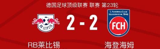 最终,全场比赛结束,莱比锡在主场2-2战平海登海姆。尽管未能全取三分,但莱比锡在落后两球的不利局面下,凭借谢什科和奥蓬达的出色发挥,顽强追平比分,展现出了强大的韧性和斗志。这场平局也为两队的联赛征程增添了别样的色彩。