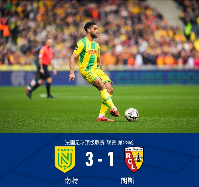北京时间 2 月 23 日,法国足球顶级联赛第 23 轮上演了一场精彩对决,南特坐镇主场迎接朗斯的挑战。比赛中局势跌宕起伏,进球、点球、红牌等关键事件接连上演,最终南特 3-1 击败朗斯,主场全取三分。