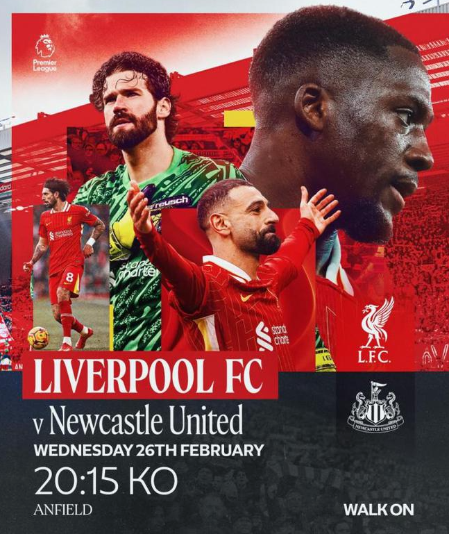 2月26日讯,北京时间2月27日凌晨4:15,英超第27轮焦点战即将打响,利物浦主场迎战纽卡斯尔联。赛前双方发布预热海报,红军核心萨拉赫与喜鹊射手伊萨克分别占据C位,索博斯洛伊、阿利森、戈登等球星一同出镜,彰显对决含金量。
