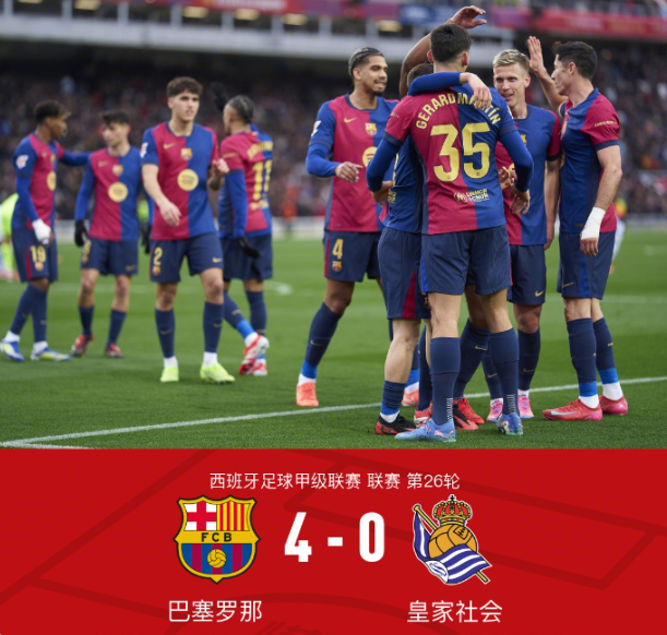 北京时间 3 月 2 日 23:15,西甲第 26 轮的一场焦点大战在蒙特惠奇奥林匹克体育场激情上演,巴塞罗那主场迎战皇家社会,主裁判为亚历杭德罗 - 金特罗。本场比赛,巴塞罗那火力全开,以 4-0 的悬殊比分大胜十人皇家社会,成功登顶西甲积分榜。