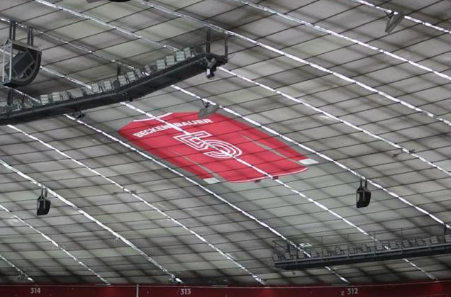 据悉,这一致敬举措是由南看台死忠球迷和俱乐部共同协商达成的。尽管特制巨幅球衣最终被放置在安联球场北看台的上方,但这并不影响球迷们对贝肯鲍尔的敬仰之情。这件球衣由32块印刷的、不易燃的玻璃织物组成,高达15.70米,宽10.54米,成为安联球场内一道独特的风景线。