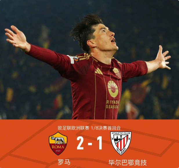 北京时间3月7日,欧联1/8决赛首回合赛事中,罗马主场迎战毕尔巴鄂竞技,双方展开激烈角逐。比赛跌宕起伏,罗马最终凭借出色发挥,2-1逆转战胜毕尔巴鄂竞技,拿下首回合胜利。
