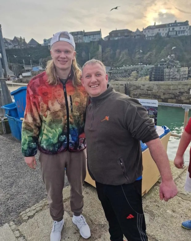 在难得的休息期间,哈兰德离开位于曼彻斯特的家,长途跋涉约315英里,前往康沃尔纽基进行海钓活动。此地风景优美,海域资源丰富,为哈兰德提供了绝佳的休闲垂钓环境。尽管行程紧凑,哈兰德并未在现场长时间停留,但他依旧热情满满,抓住机会与现场球迷互动。他亲切地与球迷合影留念,其中一位幸运的曼城球迷,更是收获了哈兰德在自己球衣上的签名,这一珍贵瞬间让球迷激动不已。