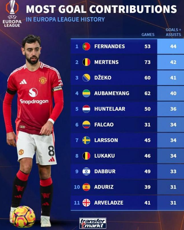 B费的出色表现不仅帮助曼联在欧联杯中取得重要胜利,也让他个人在欧联历史上的进球数达到了一个全新的高度。