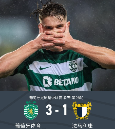 在北京时间3月16日进行的葡萄牙足球超级联赛第26轮比赛中,葡萄牙体育主场迎战法马利康,最终以3-1的比分战胜对手,全取三分。