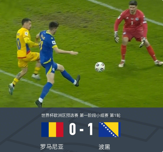 北京时间3月22日凌晨,2026世界杯预选赛欧洲区H组首轮打响,罗马尼亚主场迎战波黑。比赛第14分钟,科拉希纳茨助攻吉戈维奇破门,波黑1-0领先。此后罗马尼亚虽掌控场面,多次创造机会却未能改写比分。最终,波黑客场1-0击败罗马尼亚,取得开门红。