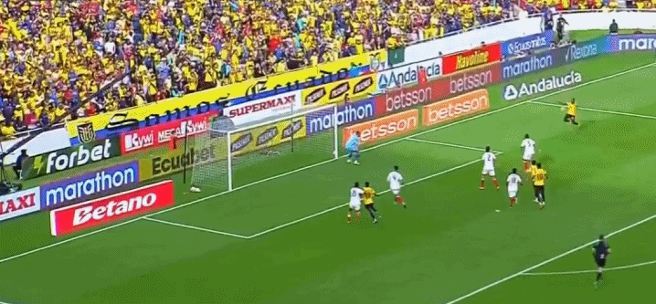 恩纳-瓦伦西亚首开纪录:第39分钟,恩纳-瓦伦西亚小角度抽射,助厄瓜多尔队取得领先。