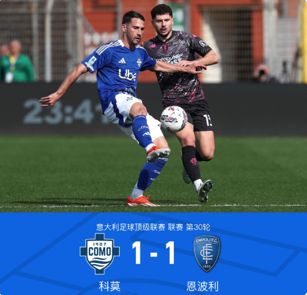 北京时间3月29日,意大利足球顶级联赛第30轮赛事打响,科莫队坐镇主场,与恩波利队展开激烈角逐。比赛过程跌宕起伏,科莫队的杜维卡斯率先破门,恩波利队的夸梅随后扳平比分,下半场补时阶段恩波利队的法齐尼染红离场,最终双方1-1握手言和。