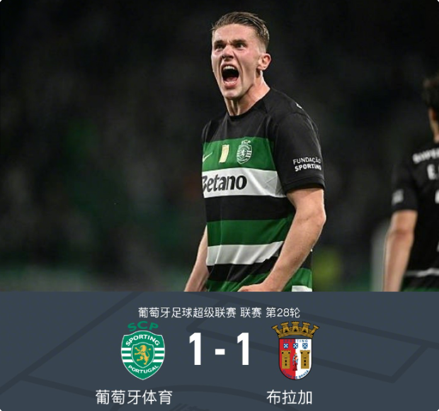 葡萄牙足球超级联赛第28轮,葡萄牙体育主场对阵布拉加。第15分钟,哲凯赖什主罚任意球直接破门,助葡萄牙体育取得领先。第87分钟,萨拉萨尔助攻阿丰索-帕特朗打入一球,布拉加扳平比分。下半场补时第5分钟,布拉加的穆蒂尼奥累计两张黄牌被罚下。最终双方1-1结束比赛,哲凯赖什与帕特朗的出色发挥成为本场焦点。
