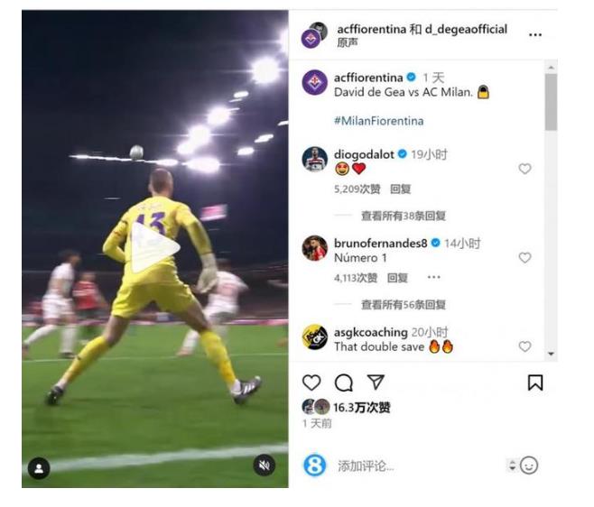佛罗伦萨官方社交媒体随即发布了德赫亚那些令人惊叹的扑救视频。视频一经发布,便引发热议,尤其是德赫亚昔日曼联的队友们纷纷留言点赞。其中,达洛特也留下了对德赫亚认可的话语,而B费更是毫不吝啬赞美之词,直接留言:“Number1”,以此盛赞德赫亚在球场上无可替代的顶级表现。