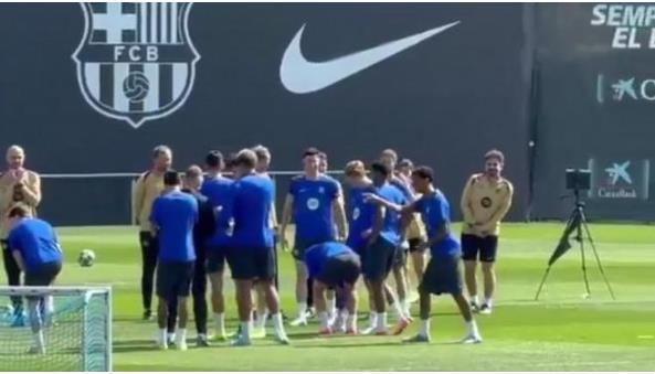 据记者AlejandroSegura现场观察报道,在训练开始前,队中的年轻小将亚马尔便与主帅弗里克展开了轻松愉快的玩笑互动。整个训练课期间,巴萨内部洋溢着良好的氛围,球员们状态积极,似乎都在以最好的身心状态迎接这场欧冠大战。