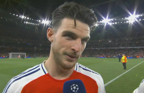 赖斯在接受亚马逊Prime采访时激动地说:“在一场比赛中,我打进了职业生涯的第一个直接任意球,这太不可思议了。当第二个进球随之而来,我的信心倍增,简直无法用言语表达。能在这样的赛事中战胜皇家马德里,对我们而言是一个非凡的夜晚。进球的感觉,是世界上最棒的体验。从那个角度传中毫无意义,那需要的是精准的射门。当我看到对方的人墙,我决定直接射门。你知道吗?我很庆幸自己尝试了,因为那真是太神奇了。”“我尚未完全意识到今晚所做的一切的意义。这是一个历史性的时刻,而且是对阵皇家马德里的比赛,我打进了两球。我们渴望赢得这项赛事,但必须脚踏实地,一步一步来。”阿尔特塔透露,球队已经讨论了几个月前他们最后一次直接任意球的得分——这一纪录要追溯到近四年前。