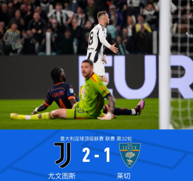尤文图斯在主场迎来莱切的挑战。开场仅2分钟,弗拉霍维奇助攻库普梅纳斯闪击破门;第34分钟,弗拉霍维奇再次送出助攻,伊尔迪兹低射破门。虽然第88分钟,赫尔加松助攻巴斯基罗托头球为莱切扳回一球,但尤文还是2-1取胜。此役过后,尤文凭借这场胜利,排名暂时上升至第3。
