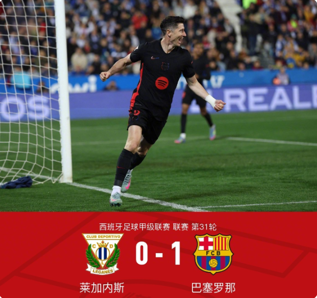 在西甲第31轮比赛里,巴塞罗那客场挑战莱加内斯。上半场,巴尔德受伤退场。下半场第48分钟,拉菲尼亚传球,莱加内斯后卫豪尔赫-萨恩斯不慎自摆乌龙,巴萨1-0获胜。巴萨在先赛一场的情况下,以7分优势领跑西甲积分榜,继续巩固争冠优势。