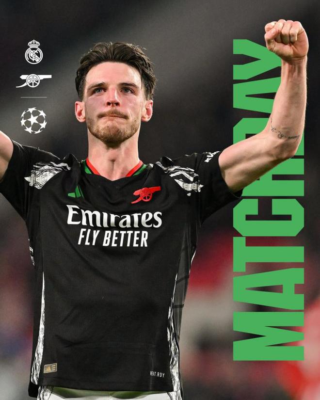 赛前,阿森纳官方社交媒体平台发布了为此役特别制作的海报,海报中,首回合比赛中两次凭借任意球直接破门的赖斯成为唯一主角,展现出球队的强大信心与昂扬斗志。