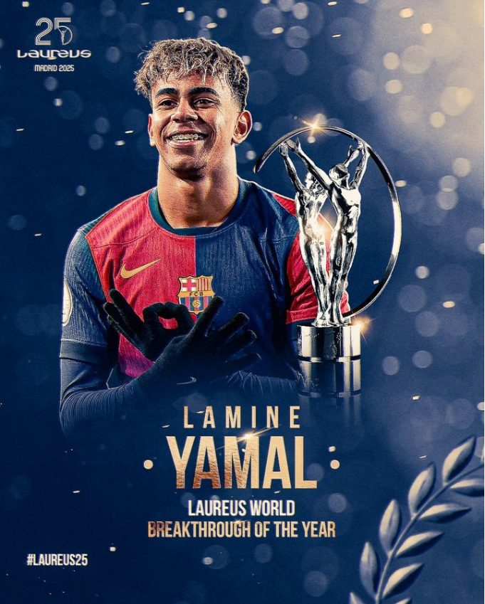 劳伦斯颁奖:皇马荣获最佳团队,亚马尔斩获突破大奖