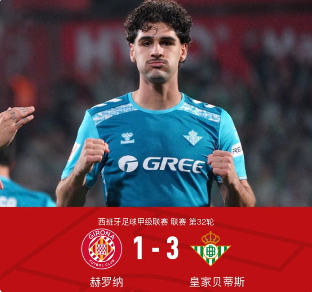 在西甲赛场上,贝蒂斯与赫罗纳展开激烈交锋。伊斯科贡献传射,安东尼逆足凌空破门技惊四座,尽管错失单刀机会,贝蒂斯仍以3-1的比分战胜对手。此役过后,贝蒂斯先赛一场,距离欧冠区仅差1分,争四形势愈发胶着。