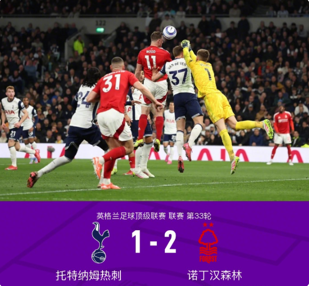 英超赛场爆出冷门,热刺主场1-2不敌诺丁汉森林,惨遭对手赛季双杀。热刺近期状态低迷,7轮仅获1胜;反观诺丁汉森林,借此役终结英超两连败,并凭借这场关键胜利跃升至积分榜第三位,上演逆袭好戏。