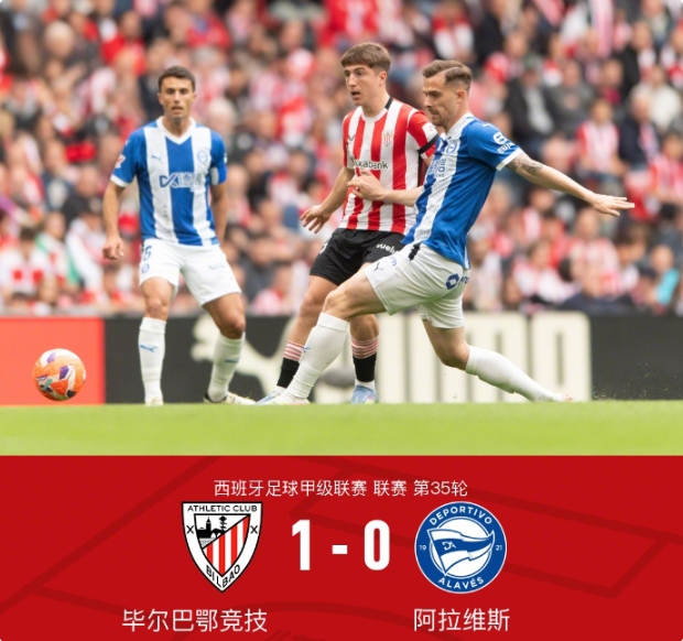 北京时间5月12日,西班牙足球甲级联赛第35轮,毕尔巴鄂竞技主场迎战阿拉维斯。全场比赛,阿拉维斯的马努-桑切斯不慎自摆乌龙,毕尔巴鄂竞技1-0获胜。