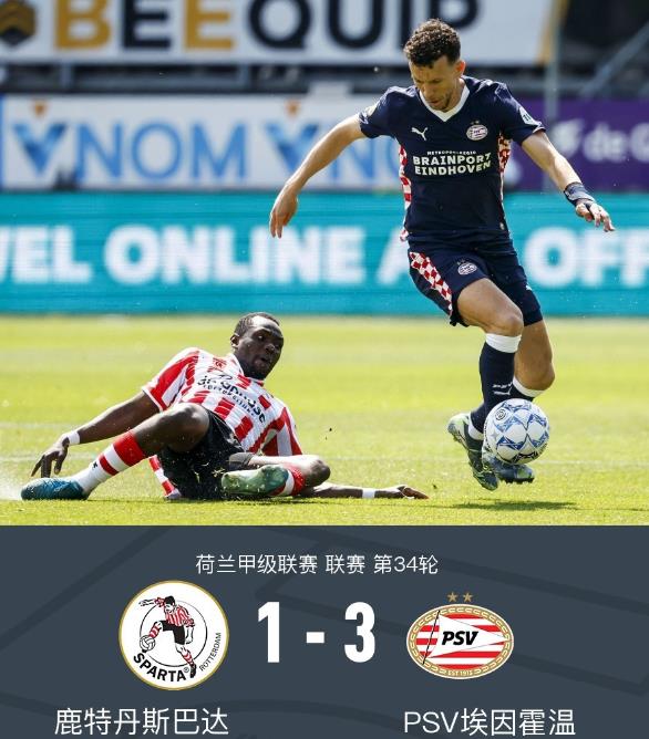 北京时间5月18日,荷甲联赛第34轮上演冠军争夺战,埃因霍温客场挑战鹿特丹斯巴达。凭借佩里西奇、吕克-德容与马里克-蒂尔曼的进球,埃因霍温3-1逆转取胜,以1分优势力压阿贾克斯,惊险夺得2023/24赛季荷甲冠军。