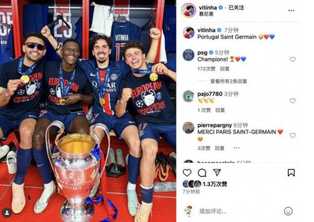 这一调侃不仅展现了葡萄牙球员在巴黎的深厚情谊,也体现了他们对于球队夺冠的自豪与喜悦。球迷们纷纷留言,为这四位葡萄牙球员送上祝福,期待他们在未来的比赛中继续为巴黎圣日耳曼带来更多荣誉。
