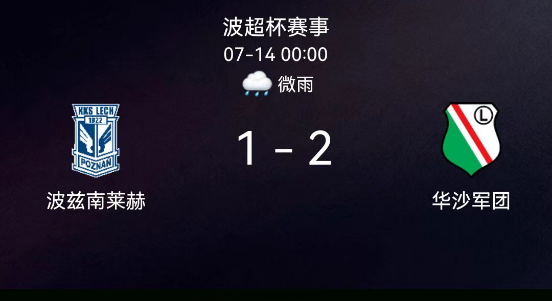 2025年7月14日,波兰超级杯决赛中,华沙莱吉亚2-1战胜波兹南莱赫捧杯。弗绍维克、什库林分别建功助球队两球领先,波兹南莱赫虽由希姆恰克扳回一城,但未能逆转。华沙莱吉亚凭借上半场的高效进攻重夺超级杯冠军。