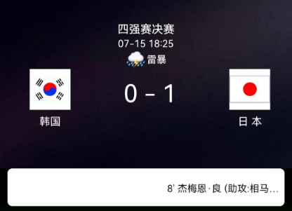 北京时间7月15日,东亚足球锦标赛小组赛第三轮,韩国与日本展开较量。上半场罗相浩中柱,热尔曼-良垫射破门,下半场李昊宰头球顶偏,李太锡吊射造险,李昊宰凌空抽射被扑。最终比分定格为0比1,日本队以三战全胜战绩夺得冠军。