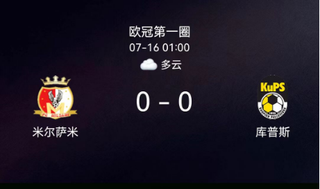 北京时间7月16日,欧洲冠军联赛资格赛第一轮次回合,米尔沙米对阵古比斯。全场比赛结束,双方0-0战平。两回合总比分,米尔沙米以0-1不敌古比斯,遗憾止步。古比斯凭借首回合1球优势晋级下一轮。
