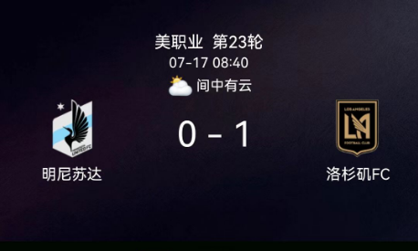 北京时间7月17日,美国职业大联盟常规赛一场较量在明尼苏达联与洛杉矶之间展开。比赛中,洛杉矶球员布安加在上半场通过点球打破僵局,打入全场唯一进球。最终,洛杉矶以1比0的比分客场战胜明尼苏达联。