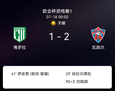 北京时间7月18日,欧洲协会联赛资格赛第一轮次回合展开较量,塔林春神与雷克雅未克矛隼展开激烈对决。比赛进行中,雷克雅未克矛隼的特里格维-哈拉尔德松率先打破僵局。随后,塔林春神的萨皮宁接队友波姆助攻扳回一城。比赛进入下半场补时阶段,雷克雅未克矛隼的永松再下一城,为球队锁定胜局。最终,塔林春神以1-2不敌雷克雅未克矛隼,两回合总比分1-5遭到淘汰。
