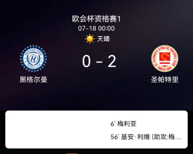 欧洲协会联赛资格赛第一轮次回合,赫格尔曼对阵圣帕特里克竞技。比赛中,圣帕特里克竞技球员梅森-米利亚率先取得进球,随后在下半场,梅森-米利亚又送出助攻,帮助队友利维破门得分。最终圣帕特里克竞技以2比0的比分取胜,两回合总比分0比3不敌对手。