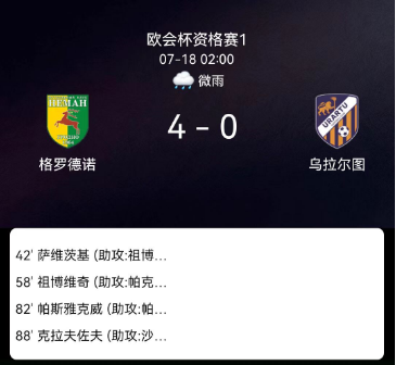 北京时间7月18日欧洲协会联赛资格赛第一轮次回合,格罗德诺涅曼对阵乌拉尔图。比赛第42分钟,祖博维奇送出助攻,萨维茨基成功破门,为球队首开纪录。第58分钟,帕尔霍缅科助攻祖博维奇再下一城,格罗德诺涅曼扩大领先优势。第82分钟,帕夫柳科韦茨助攻普什尼亚科夫破门,进一步巩固比分。比赛临近结束,第88分钟,沙拉什尼科夫助攻克拉夫佐夫打入锦上添花的一球。最终,格罗德诺涅曼以4比0战胜乌拉尔图,两回合总比分6比1顺利晋级。