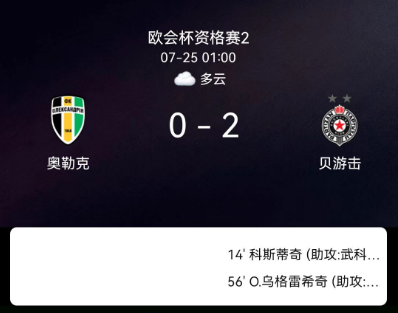 2025年7月25日,欧洲协会联赛资格赛第二轮首回合,贝尔格莱德游击队2-0战胜亚历山德里亚。波格丹-科斯蒂奇、乌格雷希奇分别建功,游击队两球完胜占得先机。