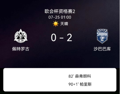 2025年7月25日,欧洲协会联赛资格赛第二轮首回合,沙巴巴库2-0战胜亨切什蒂佩特罗库布。沙弗兰科下半场打破僵局,帕里斯补时阶段锁定胜局。