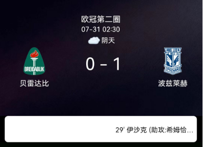 欧洲冠军联赛资格赛第二轮次回合,波兹南莱赫客场1-0击败贝雷达比,以两回合总比分8-1强势晋级。希姆恰克与伊沙克的连线成为制胜关键,主队全场未能威胁客队球门。