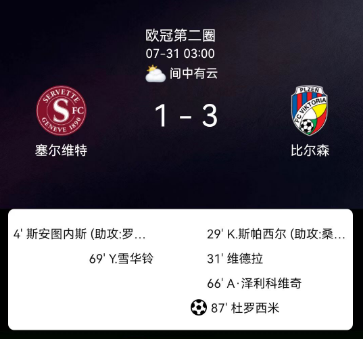 北京时间7月31日,欧洲冠军联赛资格赛第二轮次回合,比尔森胜利客场3-1塞尔维特,以两回合总比分3-2惊险晋级。安图内斯开场闪击,比尔森胜利凭借卡雷尔-斯帕奇尔扳平、维德拉反超及杜罗辛米点射锁定胜局,双方比赛中各有一人染红。