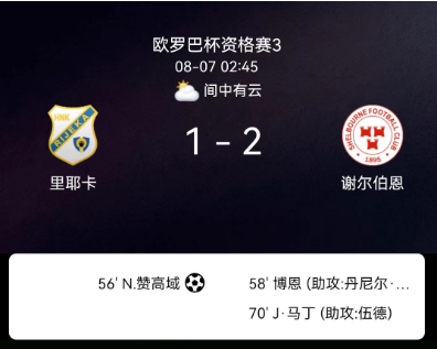 北京时间8月7日,欧足联欧洲联赛资格赛第三轮,舒尔本客场2-1里耶卡。尼科-扬科维奇点球先拔头筹,诺里斯迅速扳平,约翰-马丁终场前完成绝杀,客队展现强势韧性。