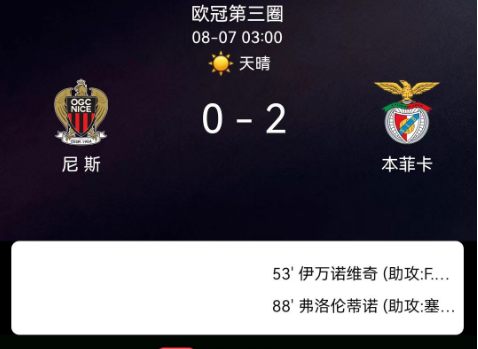 北京时间8月7日,欧冠资格赛第三轮首回合,本菲卡客场2-0完胜尼斯。弗拉尼奥-伊万诺维奇下半场接奥尔斯内斯助攻打破僵局,弗洛伦蒂诺-路易斯终场前锦上添花,客队凭借高效进攻全取三分。