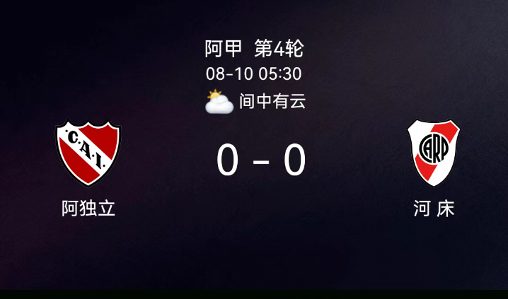 北京时间8月10日,阿根廷足球超级联赛秋季联赛第4轮,独立竞技主场0-0战平河床。全场比赛双方合计射门18次(独立竞技10次、河床8次),但均未能攻破对方球门,门将阿尔马尼与阿吉雷多次神扑力保城门不失,最终以零封平局收场。
