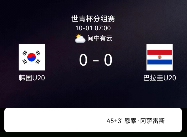 北京时间10月1日,U20世界杯小组赛第2轮,韩国U20对阵巴拉圭U20。巴拉圭上半场染红少打一人,双方均未破门,最终比分,韩国U200-0巴拉圭U20。