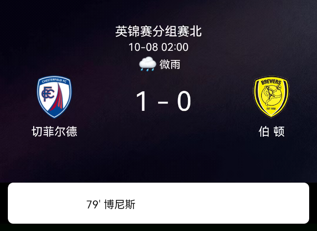 北京时间10月8日,英格兰联赛锦标赛小组赛北区,切菲尔德主场迎战伯顿。上半场双方攻防胶着,虽互有试探但均未创造出绝佳得分机会,且未出现球员染黄情况,半场战罢0-0平。下半场节奏加快,第65分钟切菲尔德发起连续攻势,伯顿门将奋力扑出险情;第79分钟切菲尔德打破僵局,博尼斯接队友传球后冷静射门命中,打入全场唯一进球;此后双方均无建树,全场比赛未产生红黄牌,最终比分,切菲尔德1-0伯顿。