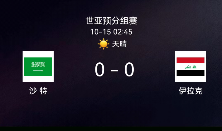 北京时间10月15日,2026年世界杯亚洲区预选赛第四阶段第3轮,沙特阿拉伯主场迎战伊拉克。第45+2分钟,沙特多萨里飞铲犯规吃黄;全场双方均未破门,第90+5分钟,赛义德任意球攻门被阿奇迪神扑。最终比分,沙特阿拉伯0-0伊拉克。