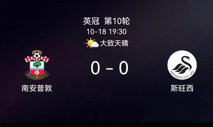 北京时间10月18日,英格兰足球冠军联赛第10轮,南安普顿主场迎战斯旺西。第28分钟,斯旺西球员犯规吃黄;第55分钟,南安普顿球员犯规吃黄;全场无进球,双方攻防均未打破僵局。最终比分,南安普顿0-0斯旺西。