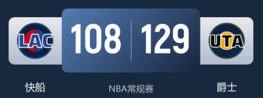 下半场易边再战,哈登继续发挥串联作用,带领球队进攻,小德里克-琼斯则连续杀入内线,单节砍下12分,助力快船队追分。然而,爵士队全民皆兵,总能及时回应快船队的攻势,分差始终保持在30分左右。末节比赛,快船队换上全替补阵容进行练兵,爵士队则始终保持住大比分领先优势。最终,爵士队以129-108的比分大胜快船队。